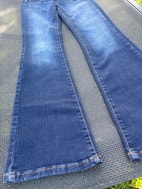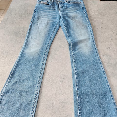Høj / bred talje. Trompetbukseben / flared leg. Helt nye. Slim model.