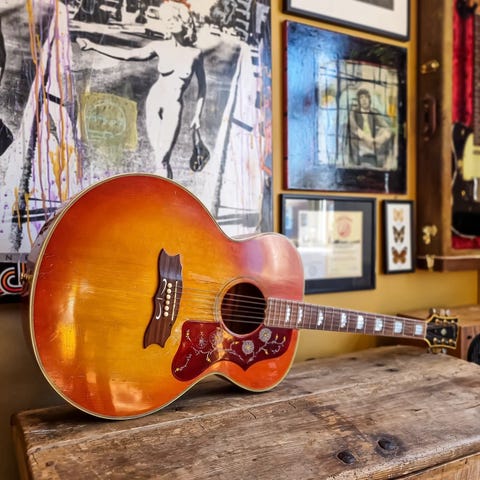 Denne femragende Kehlet FOS akustisk guitar blev oprindelig bygget og customized til musikeren John Kofoed og monteret med en Headway pickup.