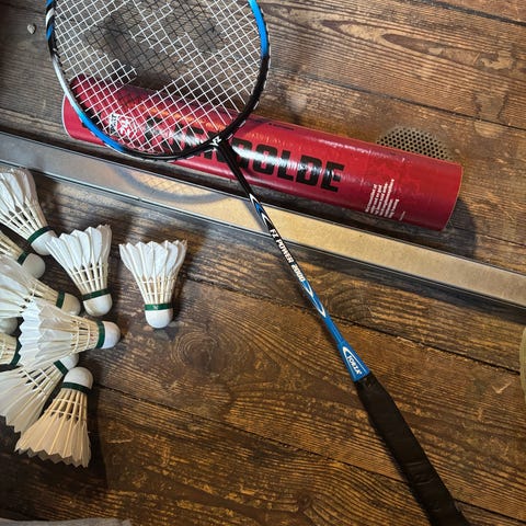 Badmintonsættet indeholder to ketchere i junior-størrelse samt 4 fjerbolde af plastik. Der medfølger også en praktisk opbevaringstaske, så det er nemt at have det hele med på farten.
