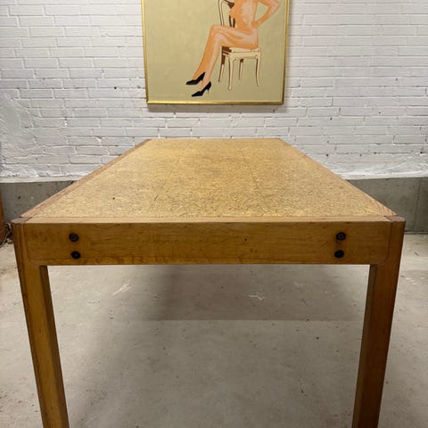 Et sjældent udbudt FDB Spisebord I massiv Egetræ med kork på bordpladen.