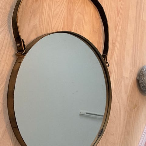 Sødt rundt spejl med plastic perler, diameter 44 cm.