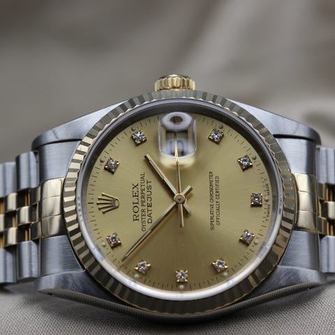 Uret har selvfølglig Datejustens trademark i form af datoen kl 3 og cyclopsen til at forstørre den. Datoen kan justeres seperat igennem urets quickset funktion, der opereres igennem den sidemonteret krone