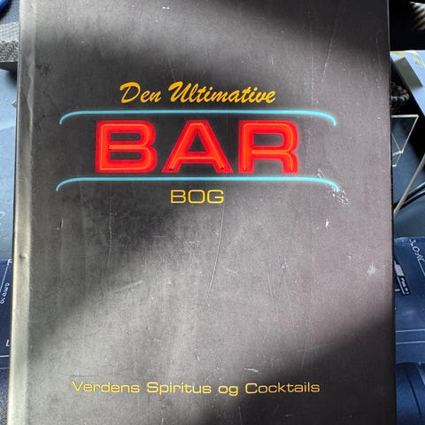 Den Ultimate Bar Bog med hårdt luksus-omslag. Indeholder information om barudstyr, opskrifter og teknikker til cocktailfremstilling. Bogen er skrevet på dansk og indeholder detaljerede afsnit om spiritus, mixologi og barpraksis.