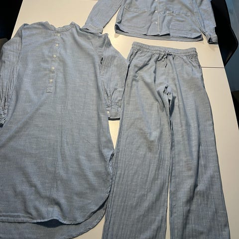 Stribede natbukser fra Magasin du Nord størrelse medium i økobomuld. De måler 74 cm i taljen og 76 cm i indvendig benlængde. De er i fin stand