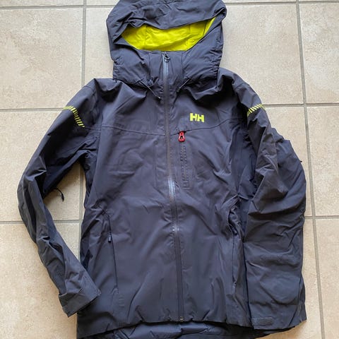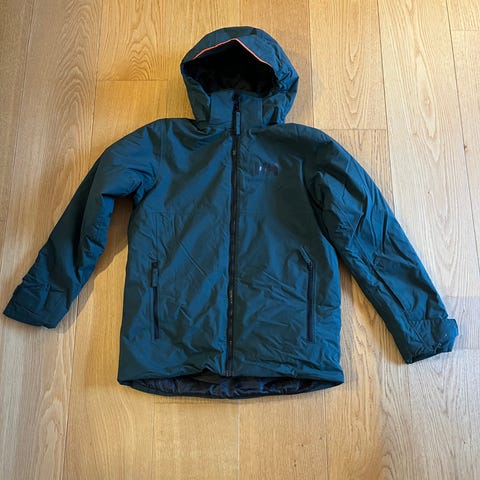 Helly Hansen Regular skijakke i størrelse 164/14. Jakken har en farvekombination af blå, grøn og lilla og er designet til at give beskyttelse mod vind og vejr. Materialet er vejrbestandigt og egnet til udendørs brug.
