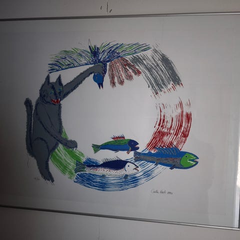 Sjældent set litografi, udført af kunsteren Carsten Nash som er søn af Jørgen Nash og med en endnu mere kendt familiemedlem Asger Jorn som var hans onkel.