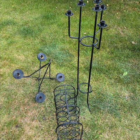 Smedejern lysekrone. Mål: højde 125 cm med de 3 stænger - og længde 60 cm.