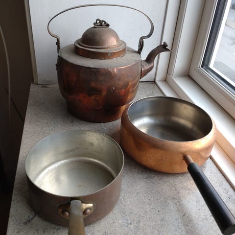 Antik kobbergryder, Antik kobbergryder sælges i Hillerød. Højde ca 12 cm og diameter ca 20 cm