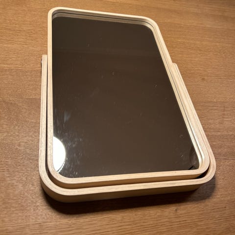 IKEA IKORNNES rektangulært spejl med hvid ramme. Spejlet har en enkel og funktionel design, der passer til forskellige rum og indretninger. Det er velegnet til ophængning på væggen og kan bruges i både badeværelse, soveværelse eller entré.