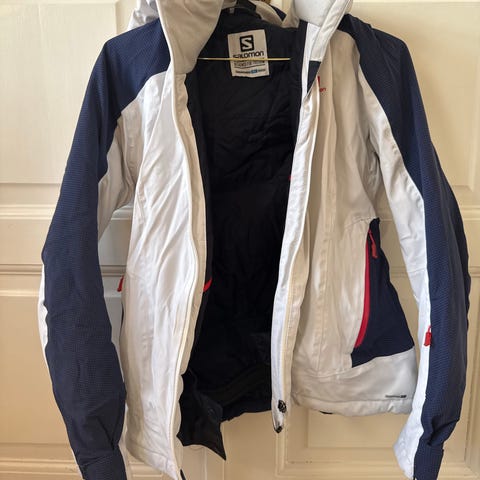 Salomon Softshell Jakke til kvinder i størrelse M. Jakken er charcoal og velegnet som midlayer til skijakke. Den er med hætte og har elastik i taljen, så den slutter tæt. Kan også bruges alene