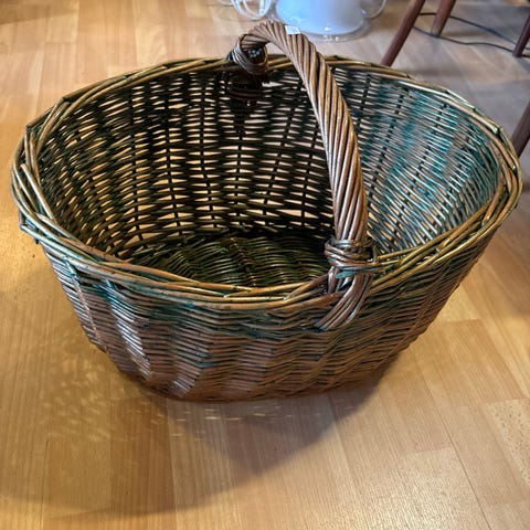 Håndlavet flettet kurv i naturfarver med læderhåndtag