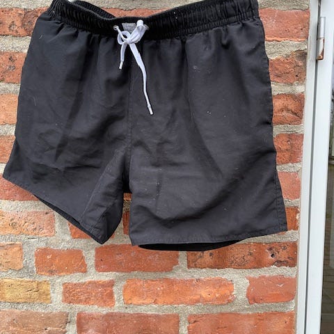 Løse shorts i behageligt materiale. Med lommer og bindebånd i taljen. Har en reperation på det ene ben - se foto.