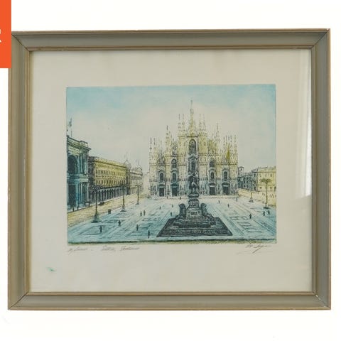 Ramme med glas og plakat af Santa Maria novella kirken fra Firenze