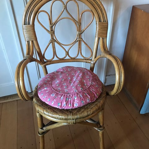 Sød gammel bambus stol i god stand. Passer til en medium voksen person eller barn. Jeg får den desværre ikke anvendt. Super sød i et sommerhus eller børneværelse.