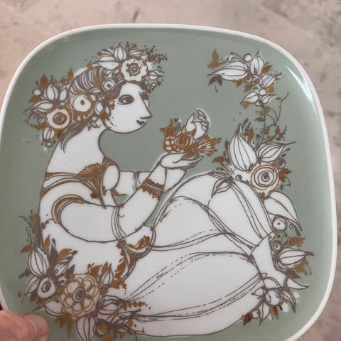 Smukt hvidt fad med motiv af Bjørn Wiinblad