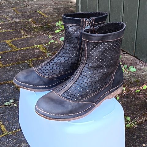 Billi Bi, str. 38, sort lav støvle med udvendig lynlås. Pris: 50,-kr.