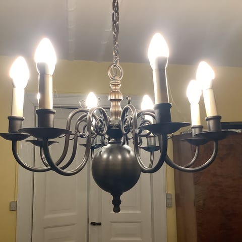 Antik/ rétro loftslampe af messing - 5 lysekrone sælges billigt grundet flytning. Pris kun kr. 300,-