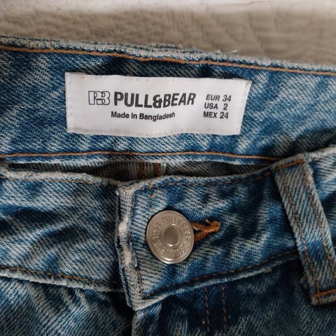 Pull&Bear Sort Jeans i størrelse W34 og XS til damer. Jeansene har en klassisk sort farve og er designet til kvindeligt brug.