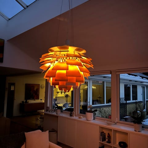 PH Koglen / Artichoke i Ø840/84 i HVID den helt store og originale størrelse sælges. Står helt skarpt. Obs bemærk denne ikke er tidligere beskadiget/renoveret eller lignende. Herudover står den så tæt på ny som muligt og håndteret meget professionel uden pådragede skader ved ophæng mv. det betyder også du kan sammenligne besparelsen direkte i kr. end hvis du skal købe den fra butik.