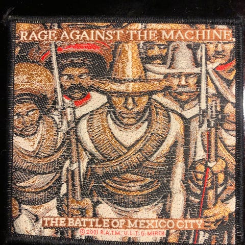 Marilyn Manson Mechanical Animals flag featuring album artwork with a humanoid figure on a black background with red and white text and symbols.