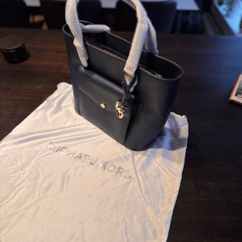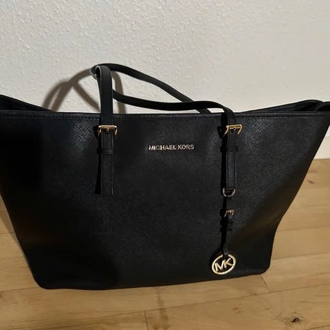 Michael Kors Tote taske i beige. Tasken har justerbare skulderremme, guldfarvet logo og lynlås. Indvendigt er der flere lommer til organisering af ejendele. Materialet er slidstærkt og velegnet til daglig brug.