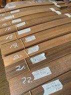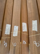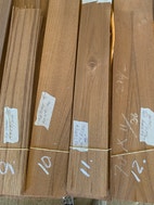 23 pakker 0,6 mm tyk Teakfiner lidt forskellige længder fra 60 til 85 cm bredder fra 6 til 9 cm