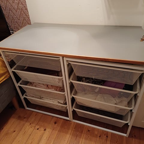 Jonaxel stativ/kommode brugt som skab/opbevaring af skjorter.