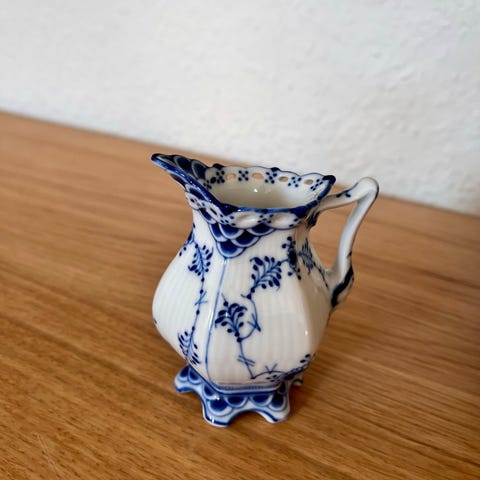 Flot Musselmalet halvblonde flødekande på 10,5 cm. Den har ingen brugsspor.