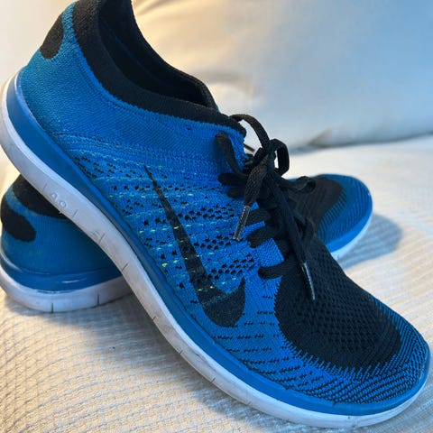 Nike løb sko i størrelse 43, blå farve. Skoene er designet til løb og har en gummisål med mønster for bedre greb. Materialet er tekstil med snørelukning. Skoene er velegnede til sportsbrug og daglig træning.
