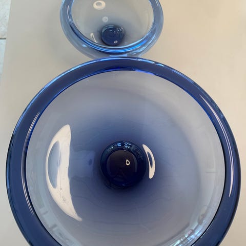 Stor skål i organisk form i Holmegaard-serien Natura.