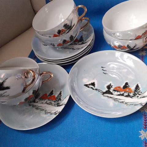 Jule Kaffekopper, 6 par kopper med kagetallerkner