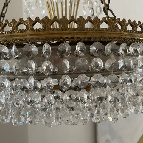 Smuk, ældre velholdt prismelysekrone.