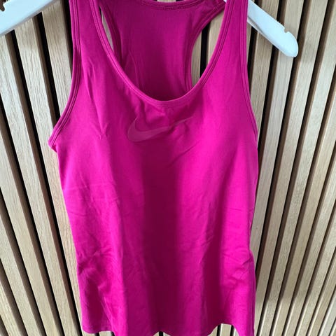 Nike Pro Dame Fitness Tanktop i størrelse L. Fremstillet i pink materiale, designet til fitnessaktiviteter. Toppen har en tætsiddende pasform. Brugt få gange.
