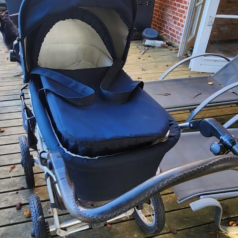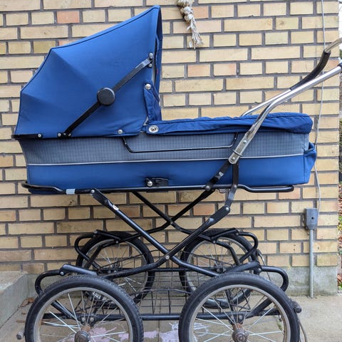 Sælger vores Odder barnevogn, som er velholdt og altid har stået i skur, så den har kun få brugsspor. Vognen har store hjul og en solid ramme, velegnet til daglig brug. Indvendigt er den foret med lyst stof