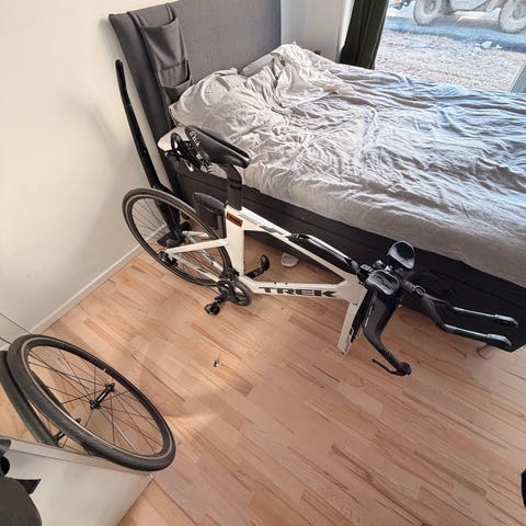 Cyklen har 2 små skønhedspletter (stel og aerobars), men carbon stel, cockpit og hjul er fuldt intakt.