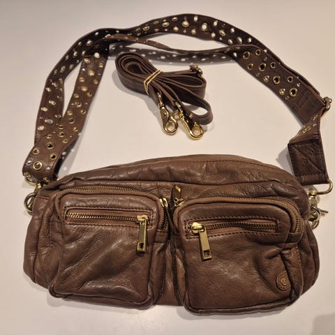 Depeche skuldertaske i skind, den er mørk brun - lidt lysere end på billederne. Den er i fin stand