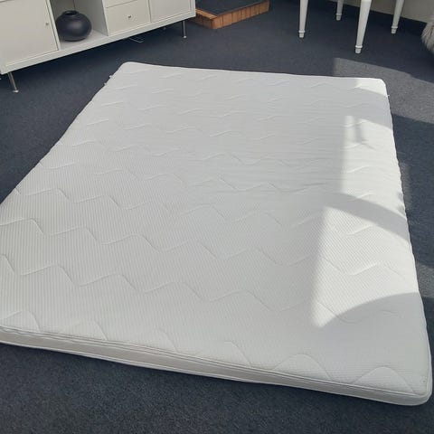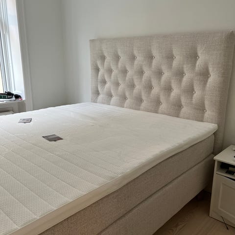 Standen er praktisk talt som ny, da der både har været betræk på og der har altid været brugt en tyk topmadras. Betræk medfølger ikke.