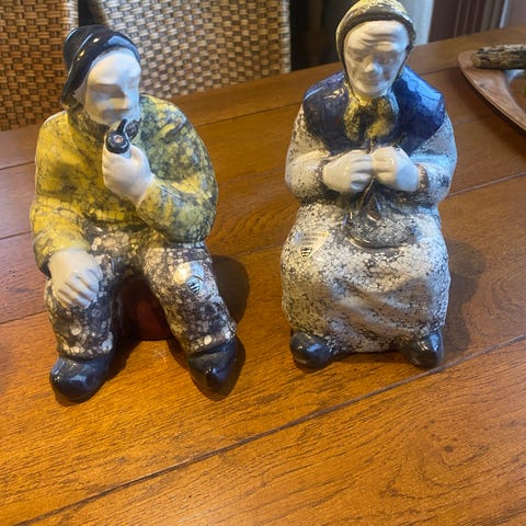 Keramik, Fisker kone og fisker mand., Michael Andersen, Flot par Fikser kone og fisker mand fra Michael Andersen Bornholm. Højde c. 11 cm. Fejlfri stand.