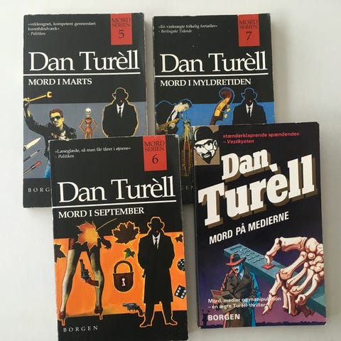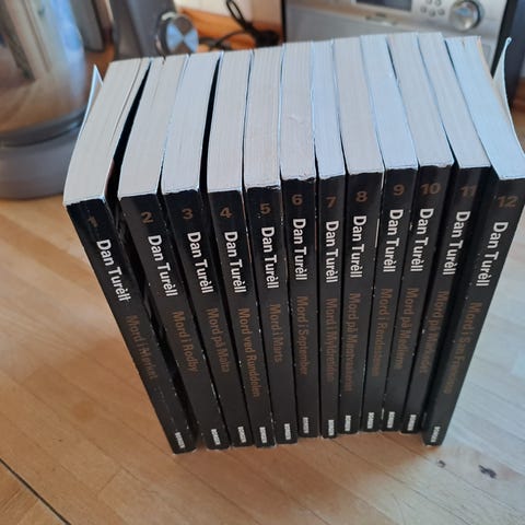 Af: Dan Turéll. Borgen 1992. De 12 bøger i serien i kassette. Paperbacks. Pæn stand