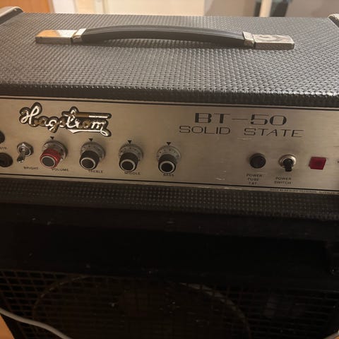 H&H Electronic 100W basforstærker med sort kabinet. Indeholder kontrolpanel med equalizer og flere indgange. Velegnet til basinstrumenter og musikudstyr.