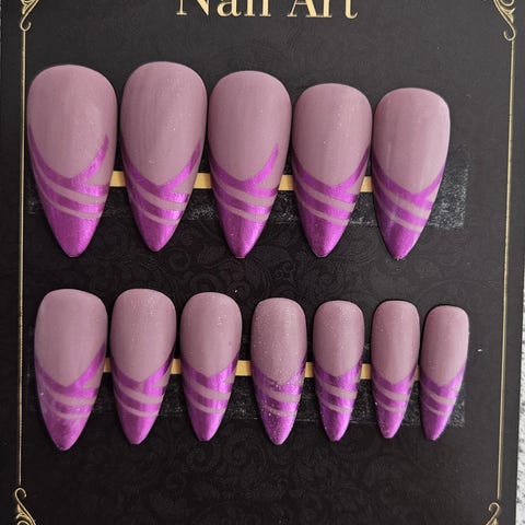 Håndlavet press on negle med negle lim, fil, og neglebånds skubber. pris og nr fremkommer på billedet, slået op flere steder. Har flere annoncer med forskellige negle. Køb af et sæt inden kl 19 sendes samme dag. Priser fra 75 kr. Til 150 kr.