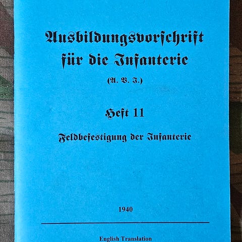 Lærebog for Hærens menige II. del for luftværnsartilleriet. København 1940. Bogen har brugsspor. Omslaget sidder fast på bogens ryg.