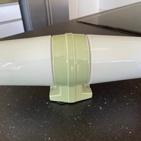Har en gammel retro badeværelseslampe i brunt keramik og hvid glaslampe. Standen er virkelig god. Måler 16 cm. i højden.