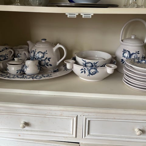 Porcelæn, 23 x 21 cm, mørk blågrøn