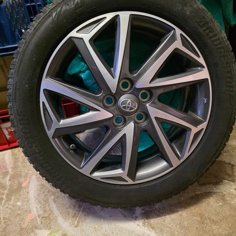 Ekstremt flotte originale Toyota Corolla 16" fælge med originale tpms ventiler og Bridgestone dæk med masser af mønster sælges.