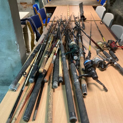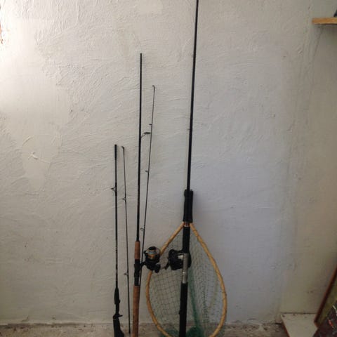 Fiskestænger med hjul, sælges samlet