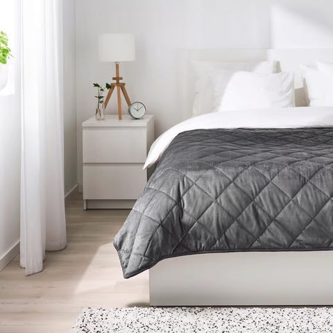 IKEA Mjukplister sengetæppe i beige.