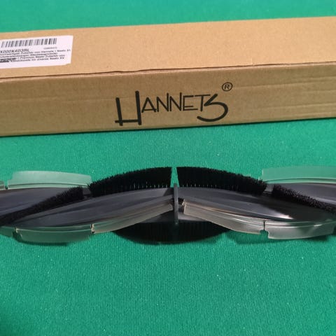 De viste genstande er fire udskiftningsbørster designet til brug i robotstøvsugeren iRobot. Børsterne er fremstillet i en kombination af blødt og fleksibelt plastikmateriale og er skabt til effektiv rengøring af gulve. De er designet til nem installation og fjernelse fra støvsugeren og passer ind i standard robotstøvsugerophæng. Farvet i forskellige nuancer af grøn, er børsterne 18,5 cm lange og præsenterer en spiralform, som giver optimal rengøringskraft.