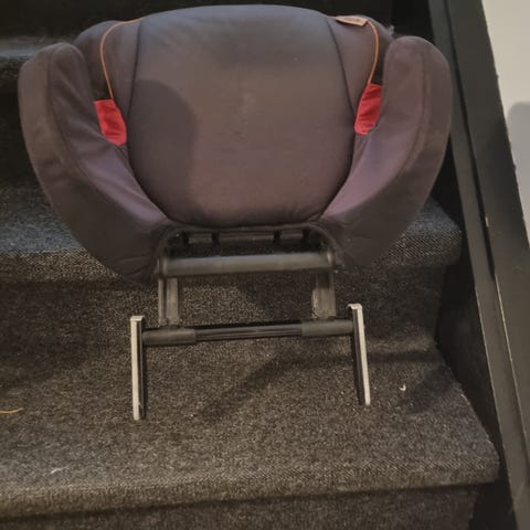 Objektet er en sort selepude til børn designet til placering på bilens bagsæde. Den er fremstillet af blødt materiale og har polstrede sider med huller til sikkerhedssele. Autostolen har en enkel, ergonomisk form for at sikre komfort og sikkerhed for barnet under kørslen. Størrelsen på autostolen er 32x36 cm, hvilket gør den kompakt og let at installere i de fleste biler. Der er advarselsmærker på bagsiden med information om korrekt brug.