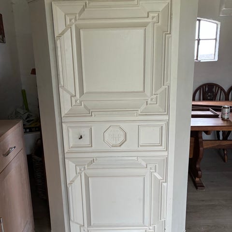 Hjørneskab i eg lud fra hunstrup møbelfabrik med patina..